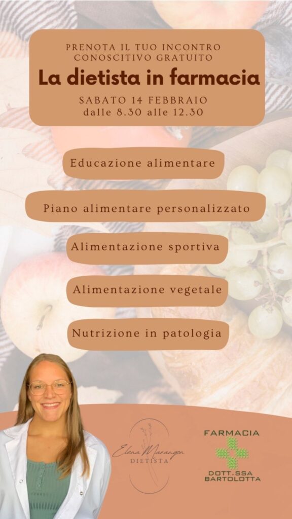 • Il 14 febbraio terremo un Open Day con la nostra dietista Elena, appuntamento conoscitivo gratuito. Ti aspettiamo in negozio!