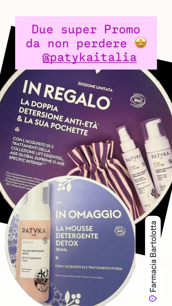 • Scopri le nostre due promozioni Patyka sull’acquisto delle linee antietà e della linea idratante.